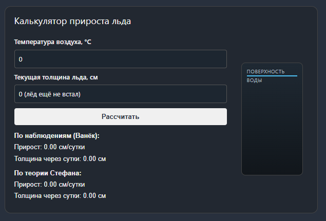 Продублирую ссылку — Прирост льда в сутки на водоемах Карелии. Калькулятор расчета.